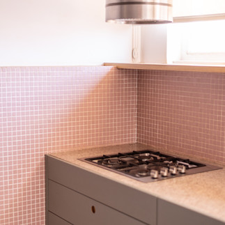 A cozinha é um dos pontos altos do apartamento. O piso de mármore e granilite são originais. E o projeto conversou perfeitamente com eles.